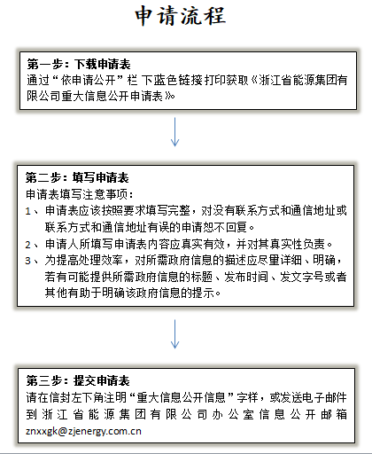 1. 信函申请。申请人可以通过信函、传真等方式向浙江省能源集团有限公司办公室提出申请,同时应在信封左下角或传真明显位置注明“信息公开申请”字样。