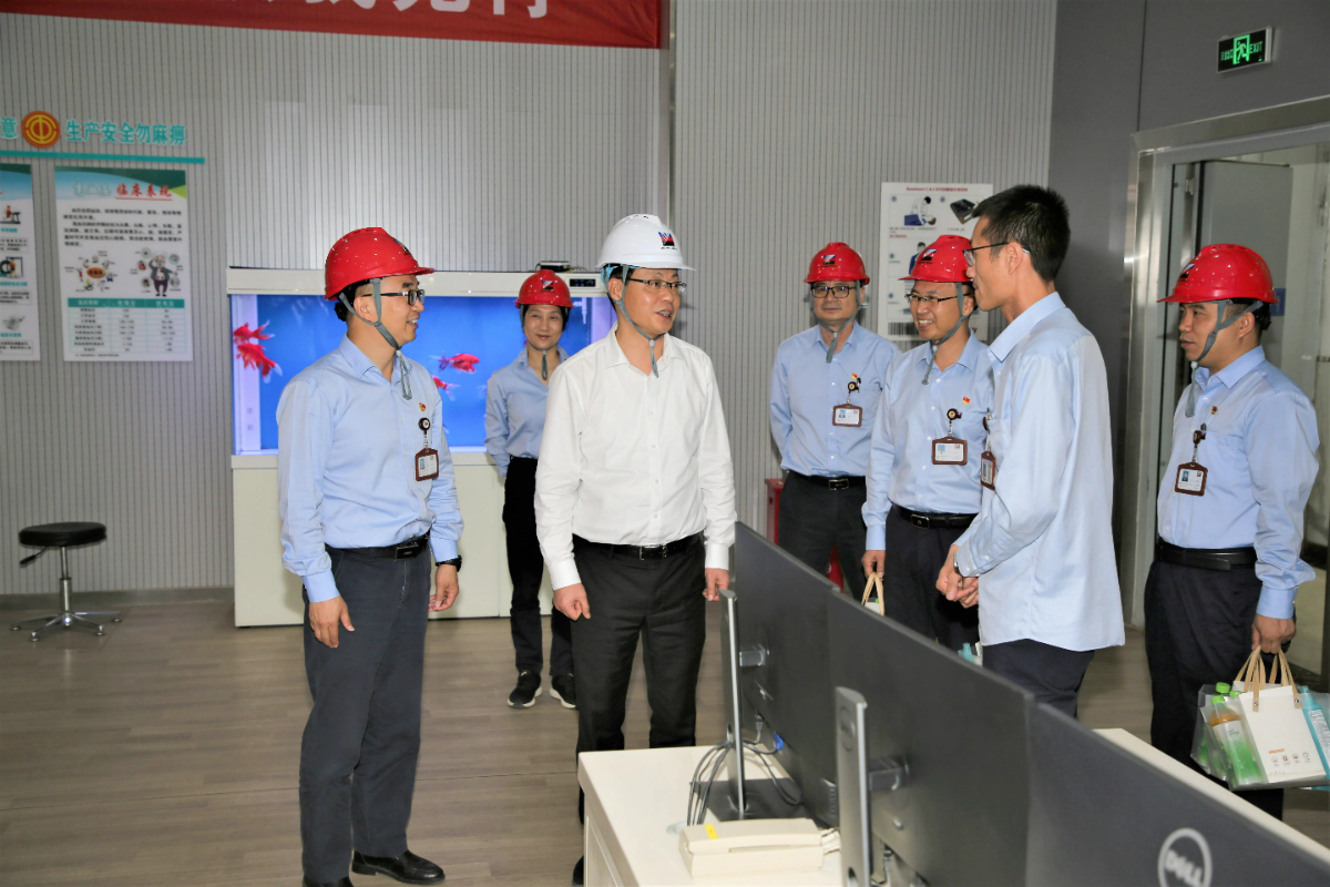 集团党委书记、董事长刘盛辉走进集控室了解迎峰度夏能源保供情况。 徐新苏 摄