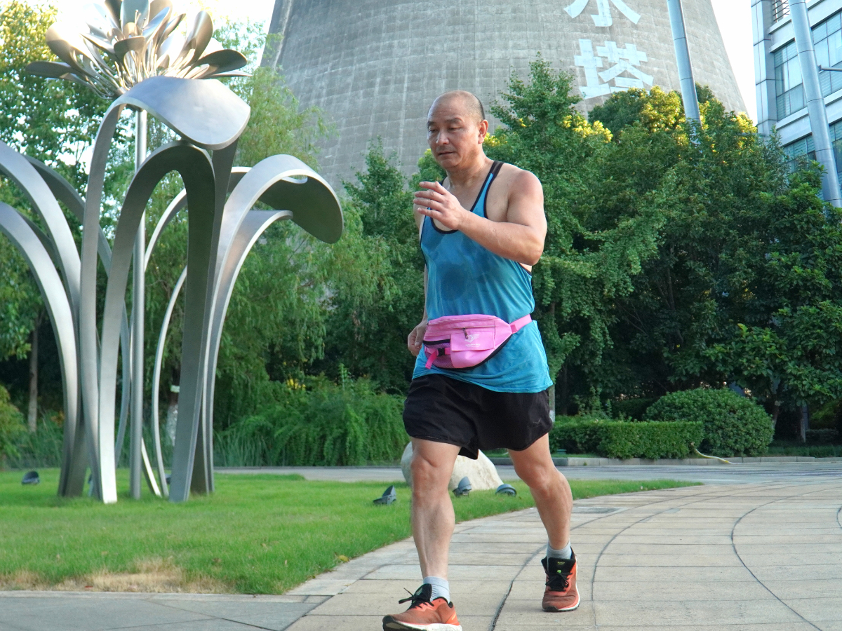 鲍伟明在浙能兰电厂(生活区)区内跑步锻炼。 何云玲 摄