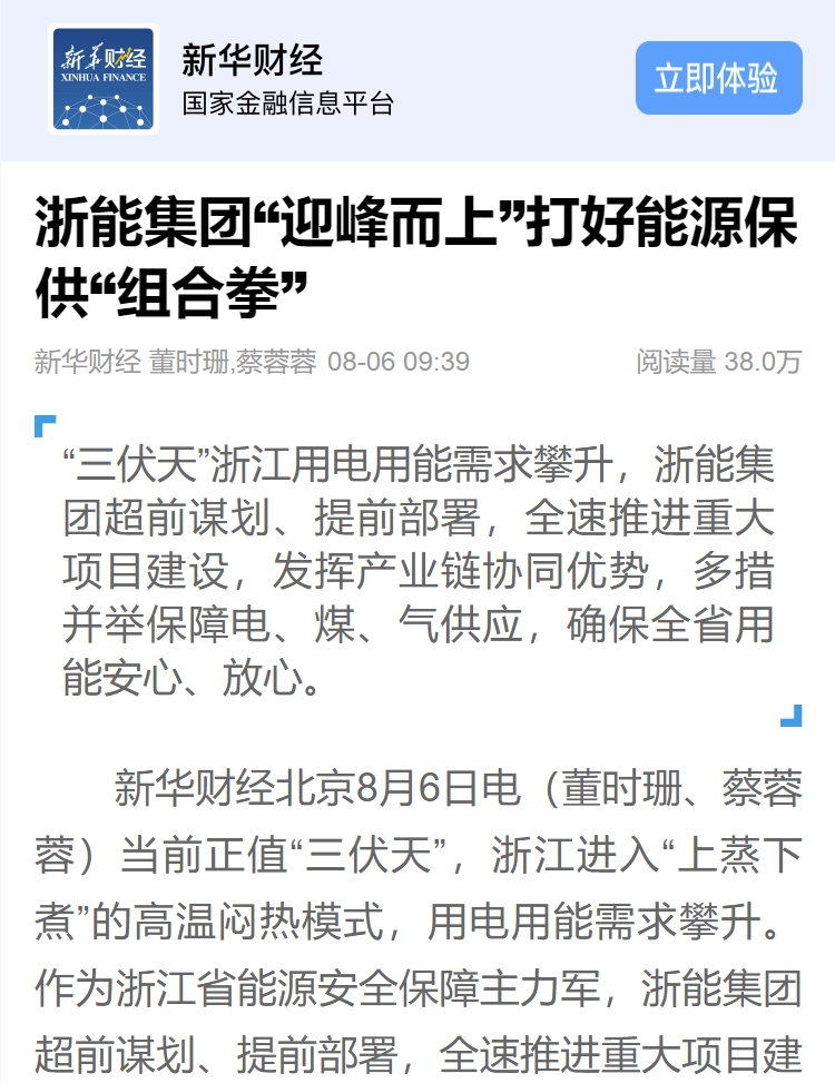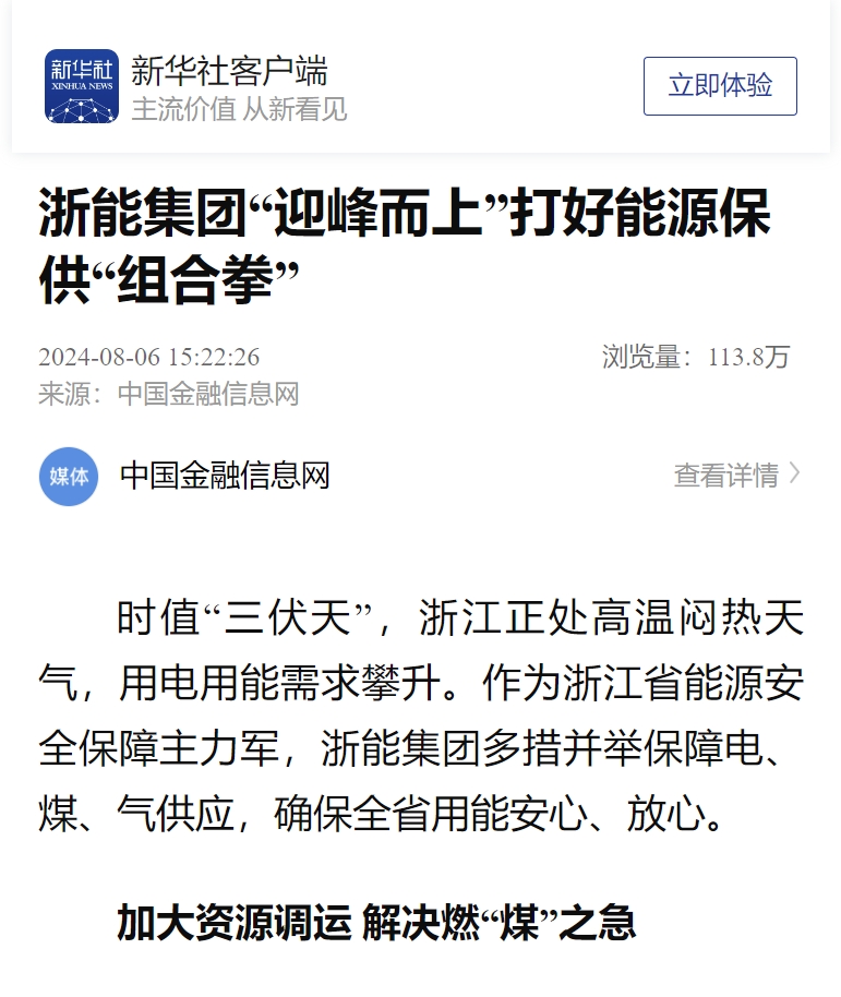 新华社客户端、新华财经客户端报道《打好迎峰度夏“组合拳” 91网 持续提升能源保供能力》。
