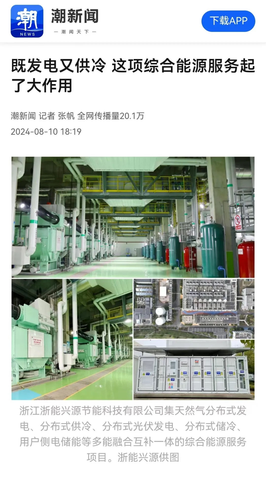 △8月10日,潮新闻报道《既发电又供冷 这项综合能源服务起了大作用》。