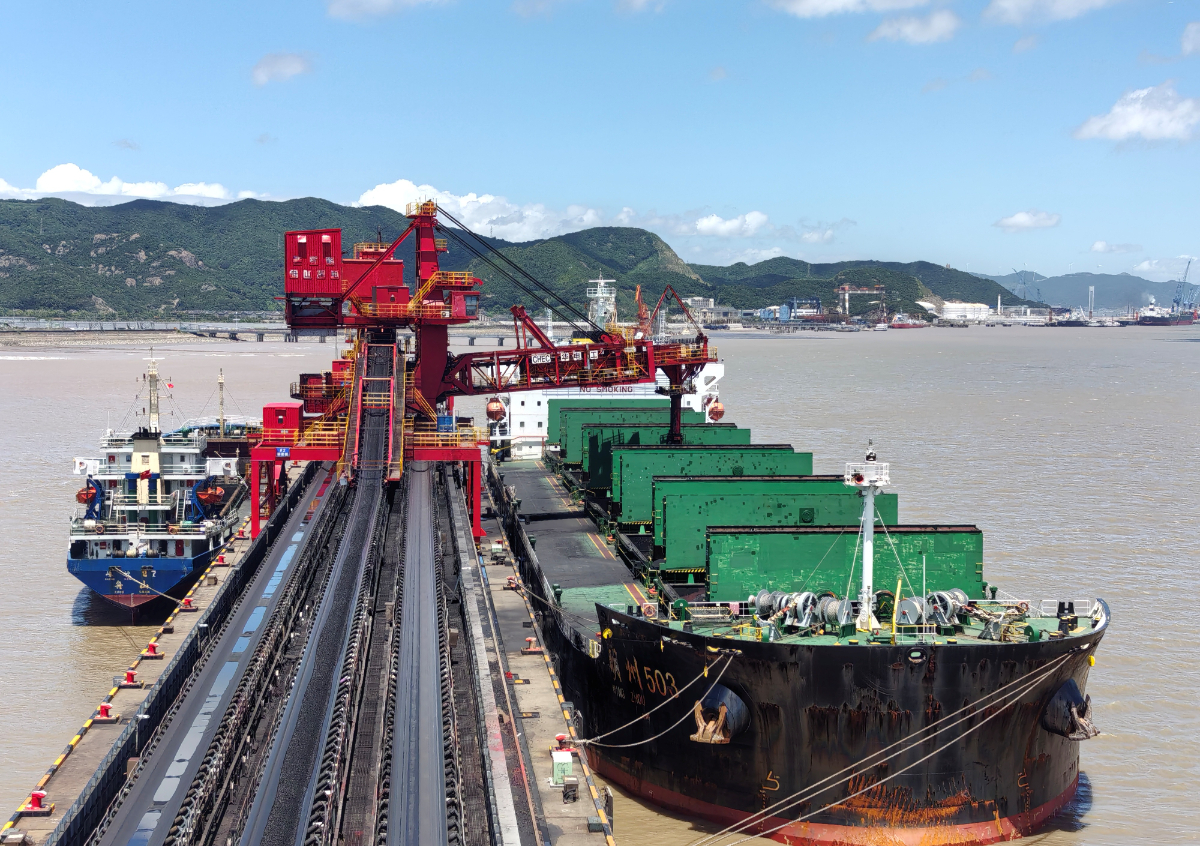 91网 采购的进口煤正在舟山六横港抢装,为省内电厂送去夏日“口粮”。 刘洋 摄