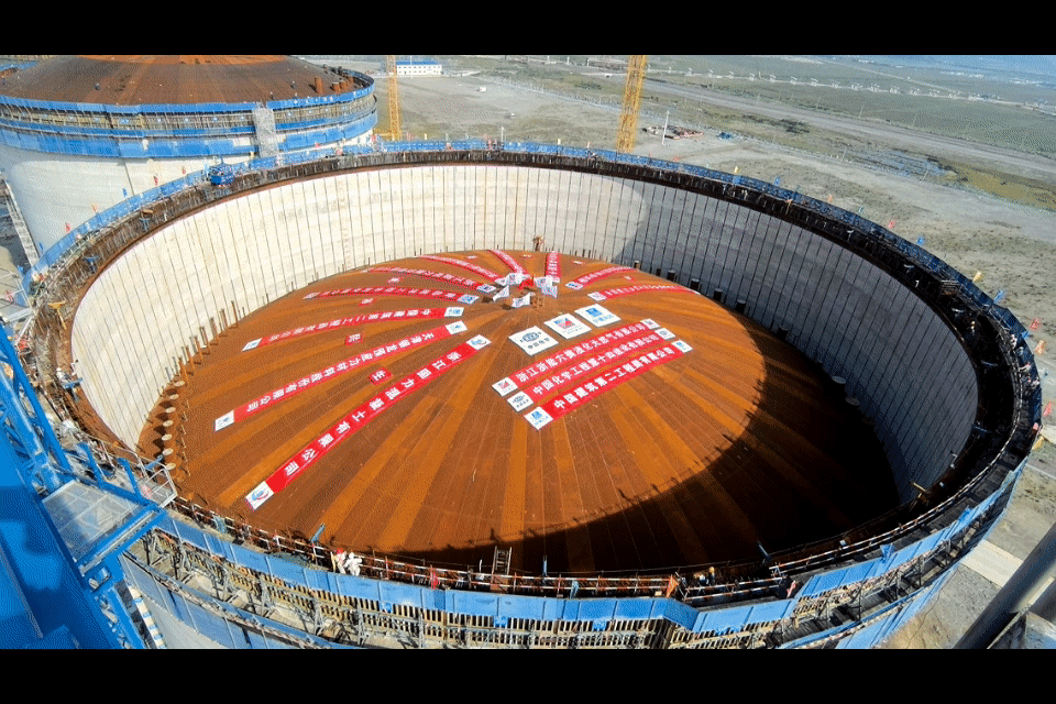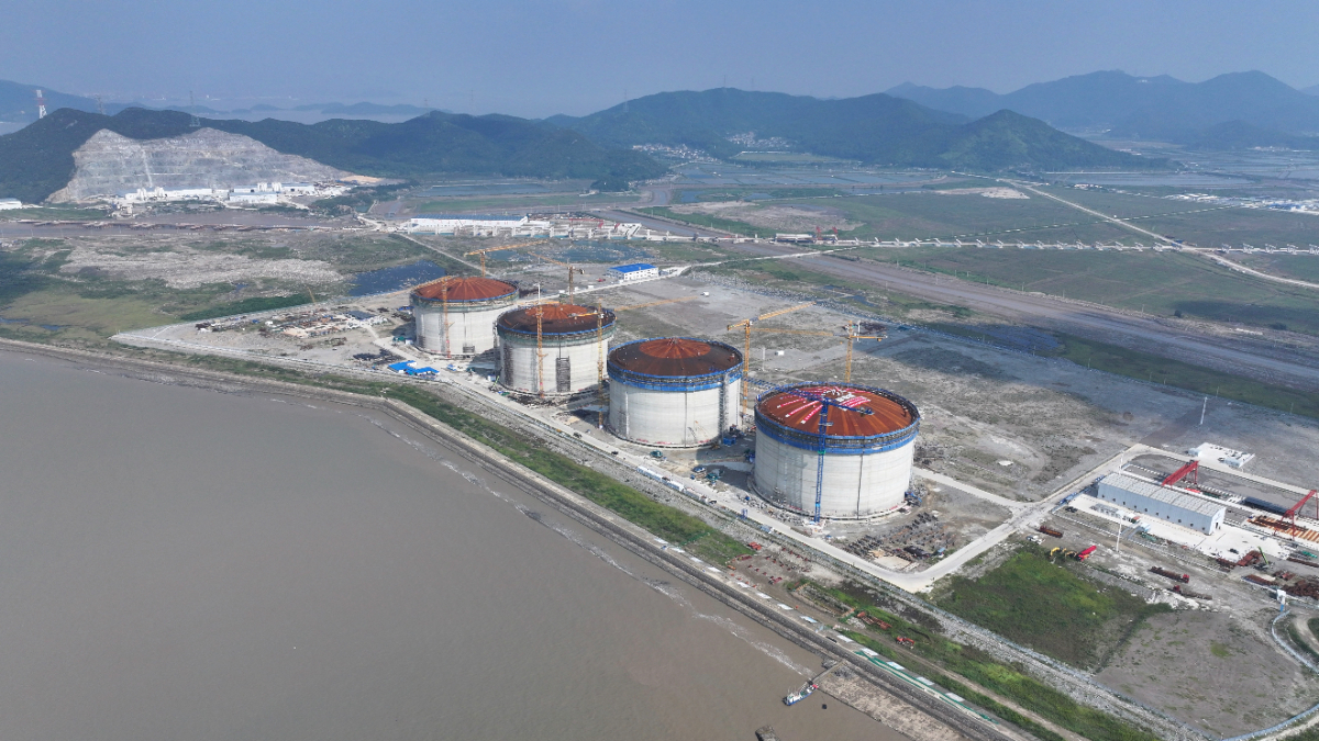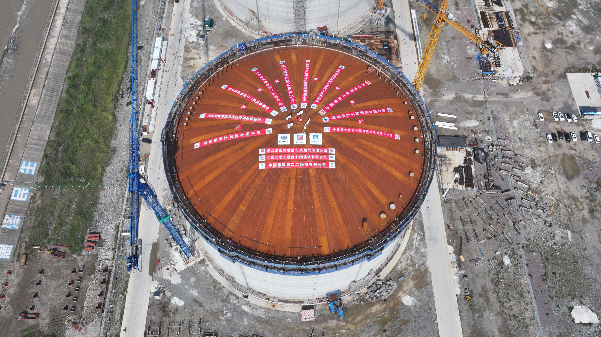 浙能六横LNG接收站项目1号储罐正在气顶升。 刘莎 提供