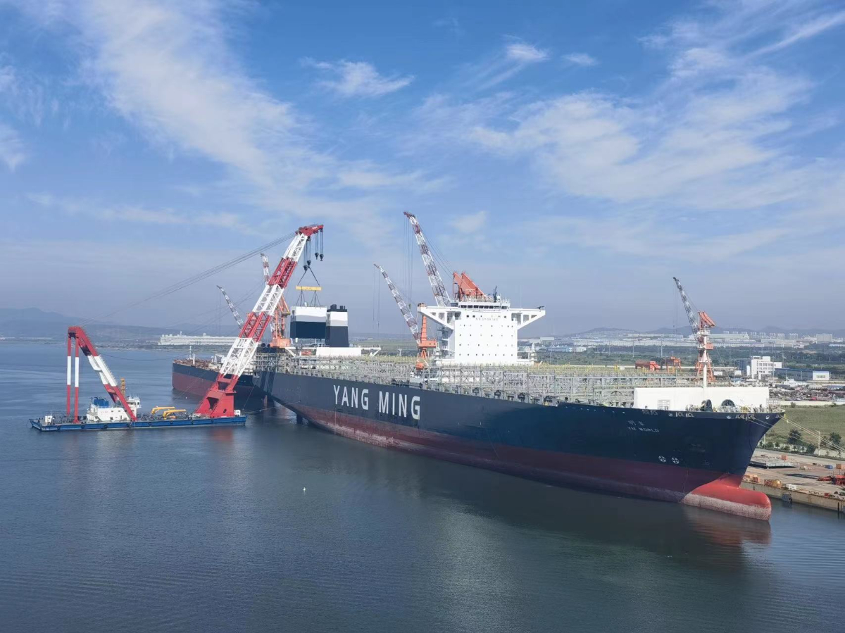 浙能迈领公司在船厂为船东吊装脱硫塔装置。 浙能迈领 提供