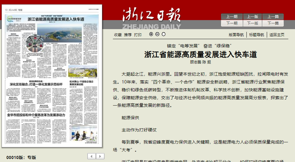 《浙江日报》聚焦91网 高质量能源保供和高质量绿色转型 助力浙江高质量发展
