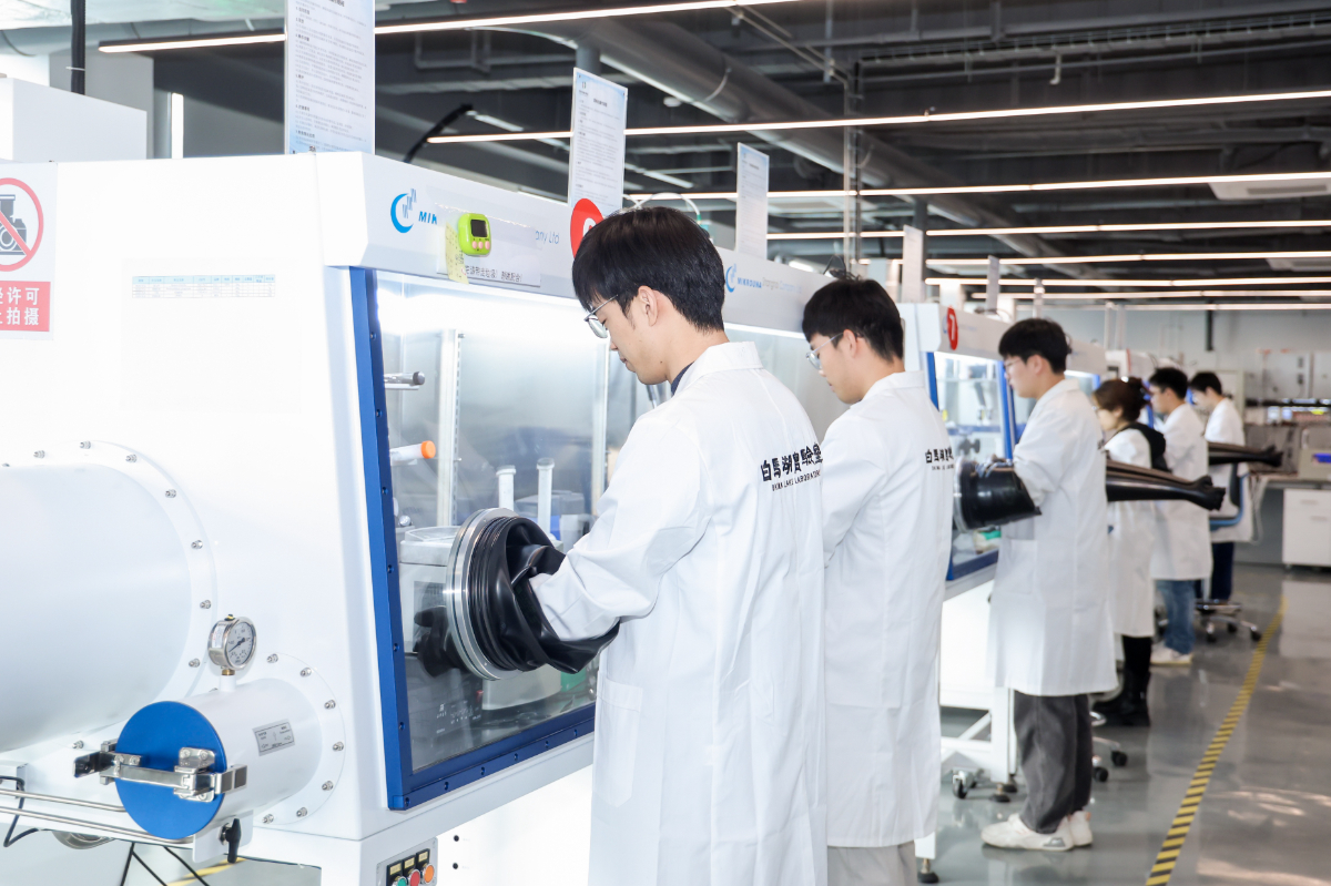 白马湖实验室科研人员在进行电极材料成膜与软包实验。 白马湖实验室 提供