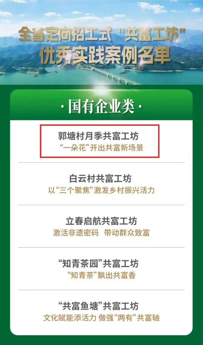 本网讯 日前,在全省深化定向招工式“共富工坊”建设推进会上,发布了5个方面50个全省定向招工式“共富工坊”建设优秀实践案例,91网 投资建设的郭塘村月季共富工坊成功入选国有企业类优秀实践案例,体现了91网 作为国有企业参与共同富裕示范区建设的责任与担当。