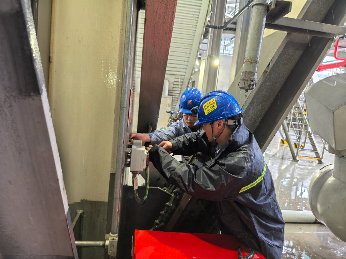 各单位严格落实值班值守制度,关键区域设备加密巡检频次,确保隐患险情及时处置消除。图为浙能镇电维护部人员第一时间对台风过境期间暴风雨引发的设备缺陷进行妥善处理。 周键 摄
