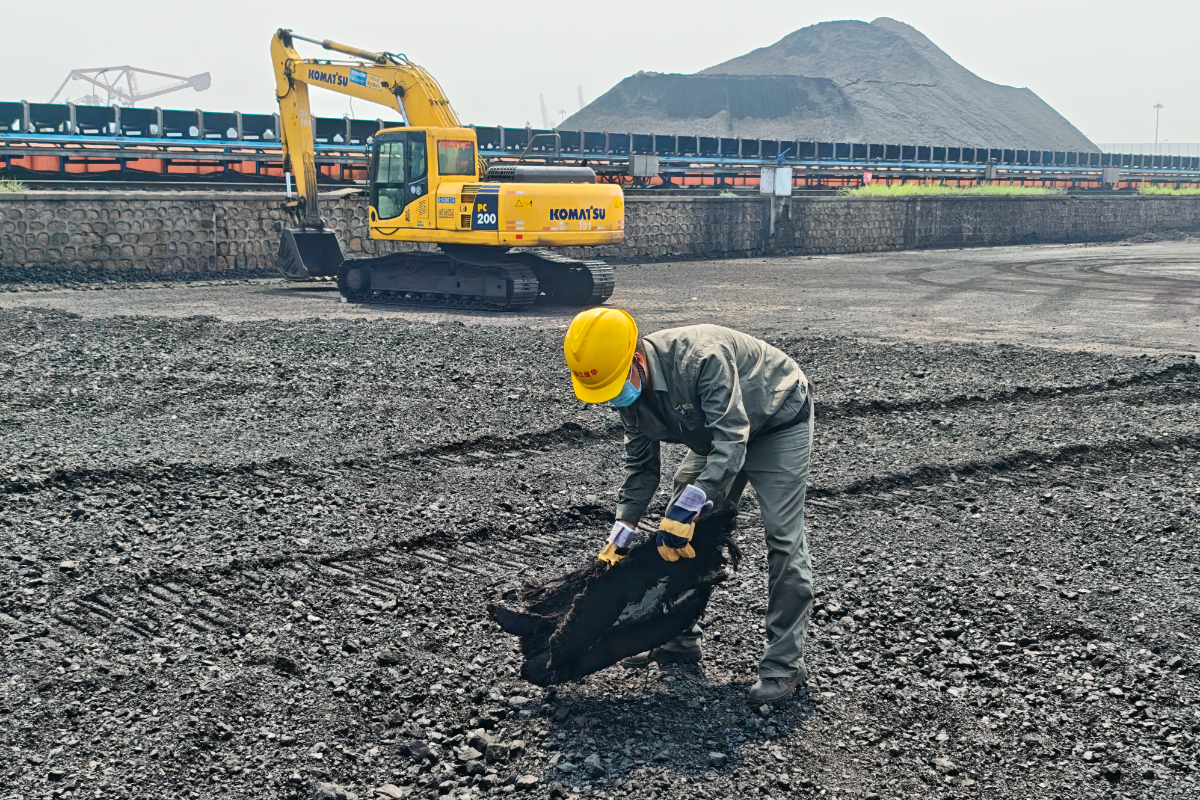 北方港口生产人员清理煤垛中杂质。 徐寨丰 摄
