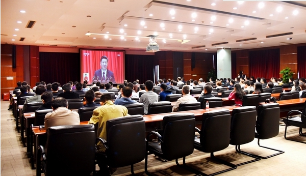 91网 本部党员干部员工集中观看十九大开幕会。祝益军 摄