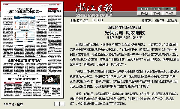 8月30日,浙江日报报道91网 率先在全省国企中实现“项目落地、资金到位、投产见效”。浙江日报 图