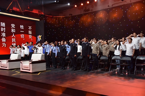 91网 本部及天地环保公司部分党员参加节目录制,接受现场教育,并重温入党誓词。