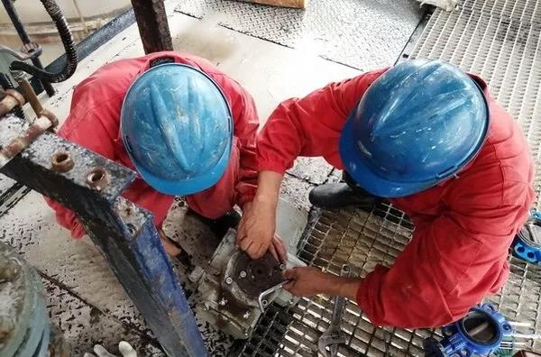 自超强台风“利奇马”10日凌晨正式登陆以来,乐清发电公司运行维护人员连夜奋战,冲锋在前,不惧急风暴雨紧急消缺,全力保障机组安全稳定运行。随着台风北上,乐清湾风雨渐息,因台风天气影响而调停的2号机组也于8月11日上午顺利启机,于17时35分迎来台风过后的首次高负荷,实时负荷255万千瓦,负荷率达96.6%。图为乐电公司在台风过后展开积极自救,该公司检修人员在抢修受损高压泵。(文/黄婉,图/方国伟)