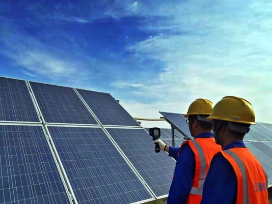 浙能下属省新能源投资集团公司西北光伏电站生产人员国庆期间加强设备巡检,安全保电献礼祖国70华诞。李彦伟 摄