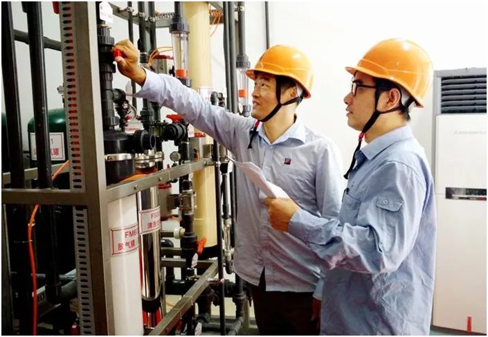 ▲浙能技术研究院环化专业人员在长兴中试基地膜实验室调试设备