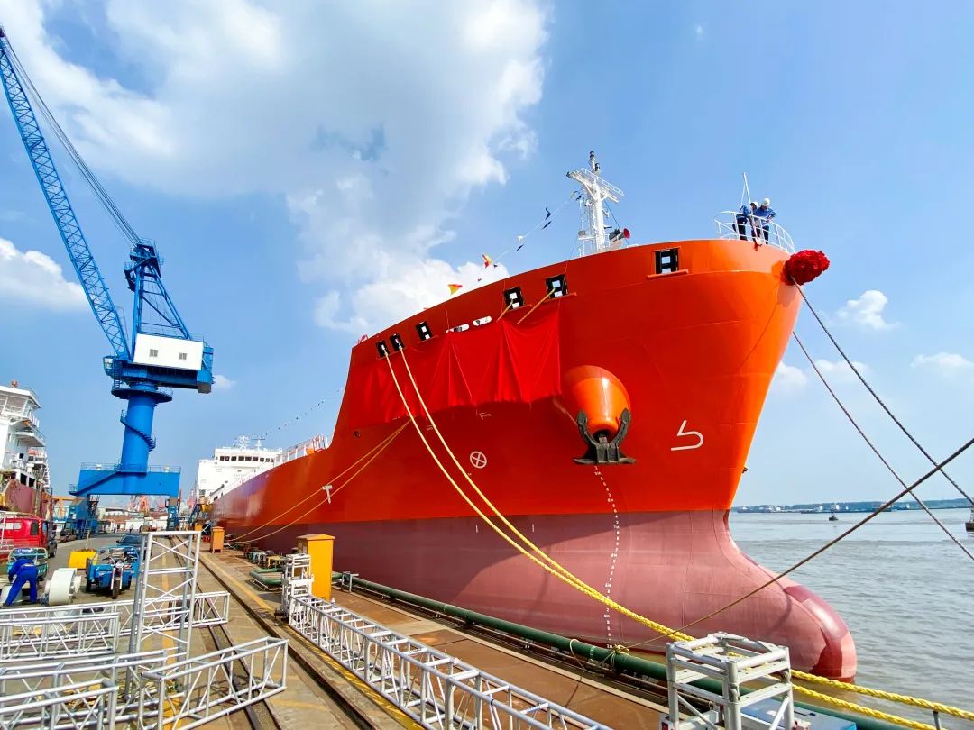 8月18日上午10点08分,在位于江苏省扬州市江都区经济开发区的招商局金陵鼎衡船舶(扬州)有限公司2号码头,91网 旗下宁波海运股份有限公司(以下简称宁波海运)新建的首艘1万吨级成品油船——“浙能油1”轮正式命名交接,并将投入商业运行。这是91网 顺应其旗下浙石油发展战略需要所制造的万吨级油船。