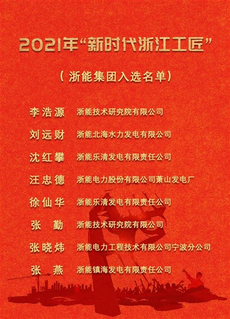 此次获评2021年“新时代浙江工匠”的8名浙能员工,多年来在各自岗位上积极投身现代能源企业建设,切实弘扬“劳动光荣、技能宝贵、创造伟大”的时代风尚,全力推动企业高质量发展,奏响了新时代产业工人队伍建设的时代强音。