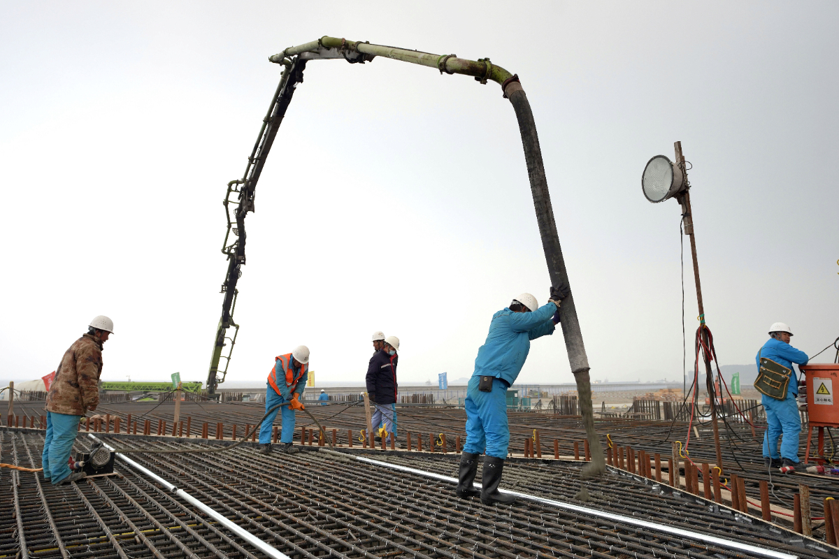 浙能六横LNG接收站首罐承台第一方混凝土开始浇筑。 周志南 摄