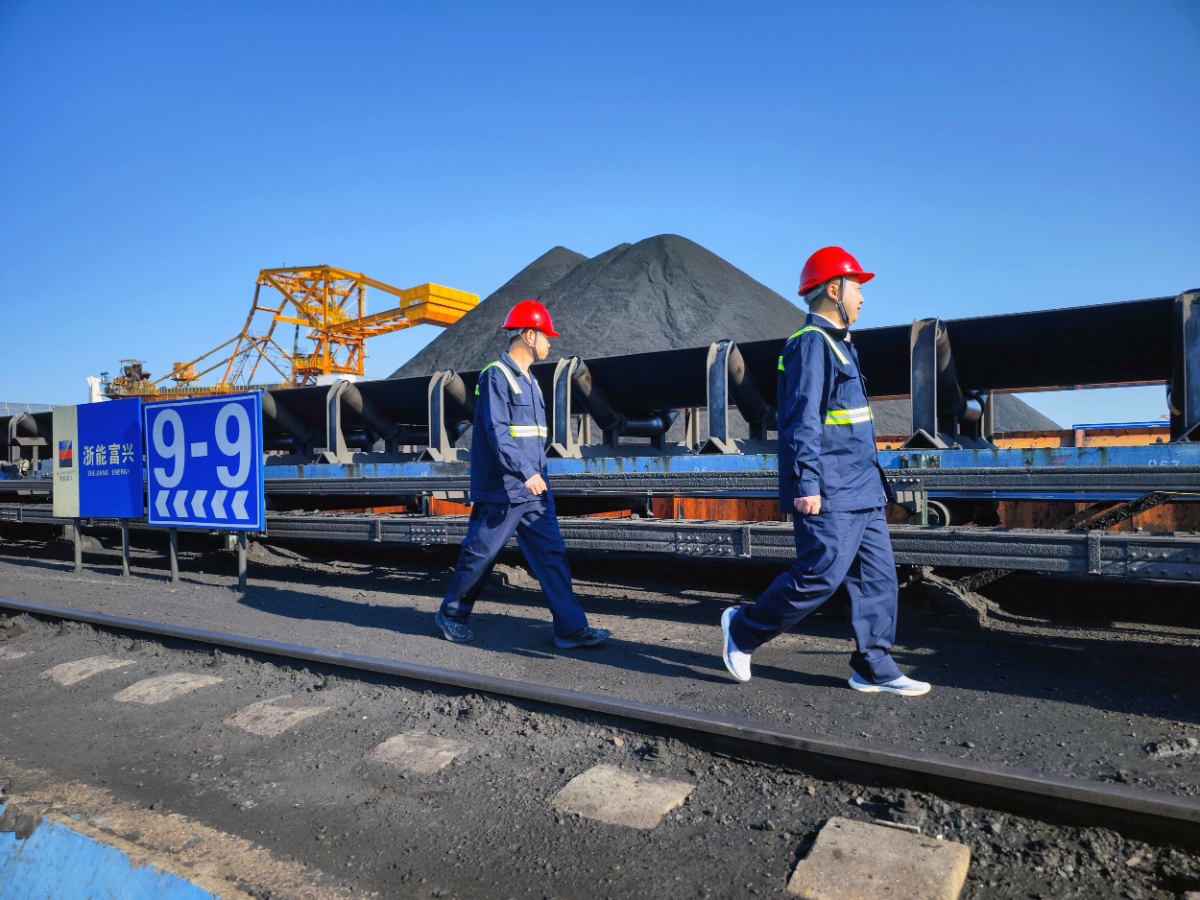 迎峰度夏期间,富兴燃料秦皇岛港驻港员正在专用煤场巡查。 富兴燃料 提供