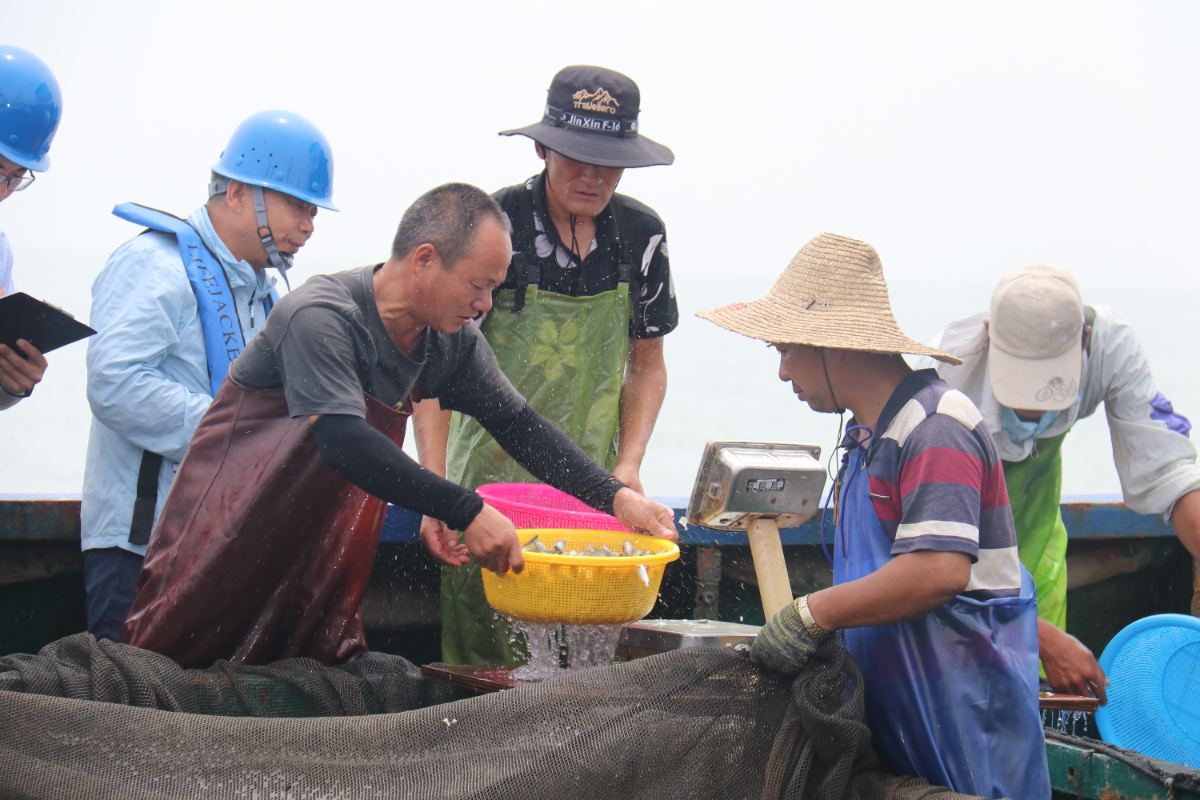 嘉海风电场人员正在进行增殖放流。 张露 提供