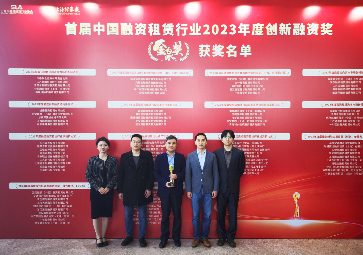 本网讯 3月29日,“金融赋能助发展、泉涌浦江润万企”——首届融资租赁资产证券化高质量发展大会暨首届中国融资租赁行业年度创新融资奖(金泉奖)颁奖典礼在上海临港举行,浙江浙能融资租赁有限公司受邀出席本次活动并荣获“2023年度最佳绿色低碳发展融资奖”。