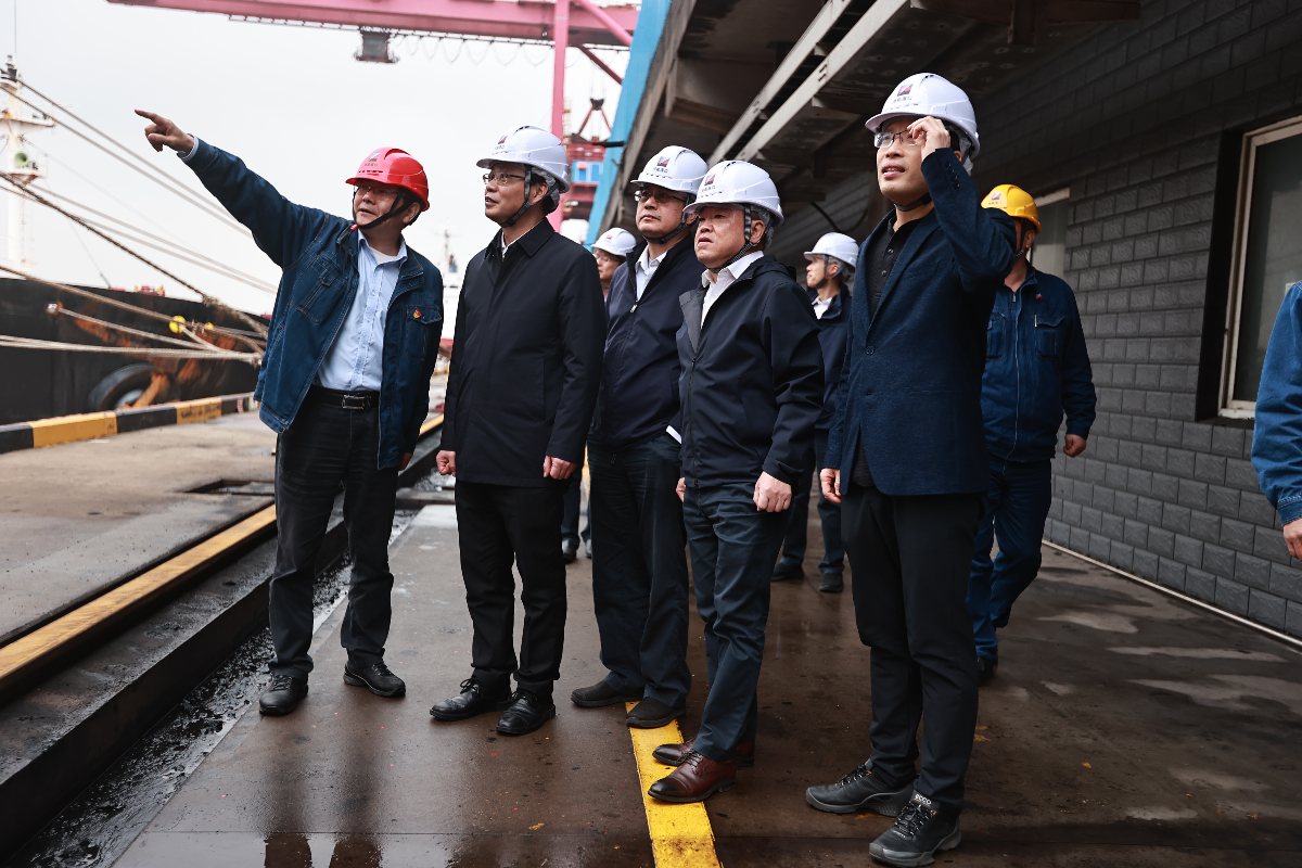 刘盛辉一行正在调研浙能港口卸船码头。 陈宇 摄