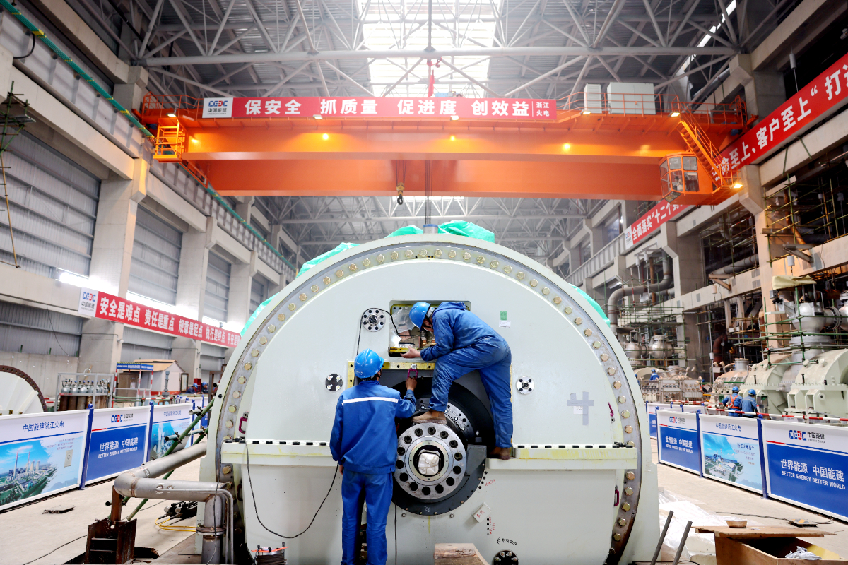 六横电厂二期工程3号汽机房建设场景。 陈思颖 摄