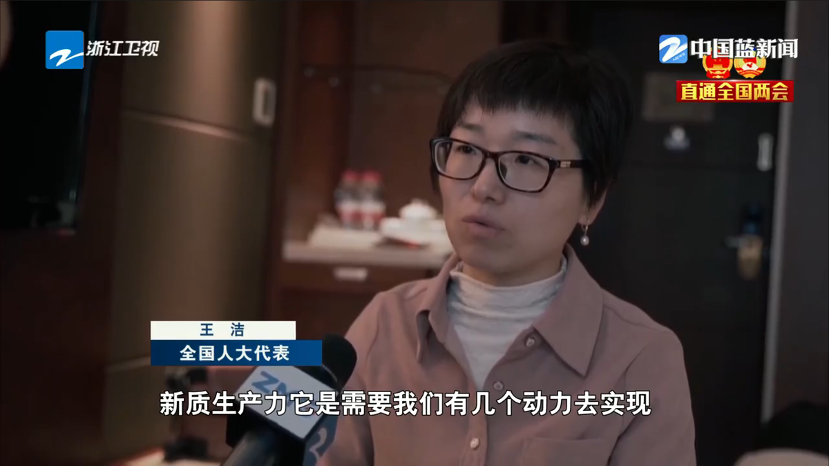 浙江卫视《浙江新闻联播》报道《直通全国两会·履职新声音 王洁:让科研与生产力双向奔赴》。 浙江卫视 图